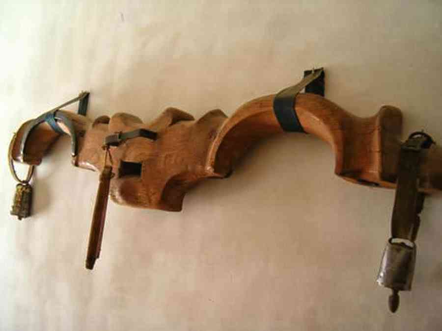 Estas son piezas que se ponen en la frente de los bueyes o las vacas para pasar la coyunda sin que les haga daño y así, de esa forma, poder sujetar el yugo.