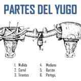 En otras palabras, es el yugo un instrumento de madera que forma una yunta de bueyes o mulas, y que va sujeta a carros o arados.